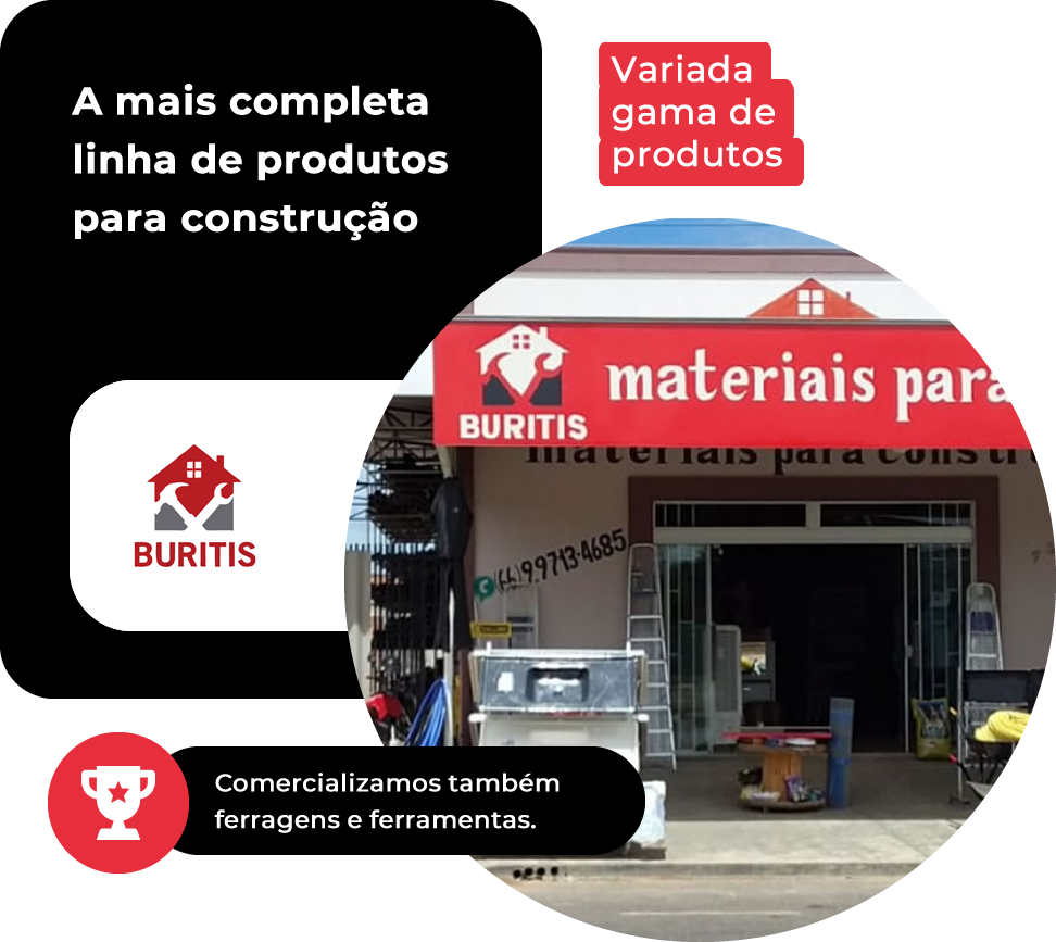A Buritis Materiais de Construção está localizada numa das cidades que mais cresce no Brasil e que necessita de variedade e qualidade em produtos de construção civil, por isso trabalha com a mais completa linha de produtos para construção, do básico ao acabamento, todos os produtos das melhores marcas e modelos, a pronta entrega.